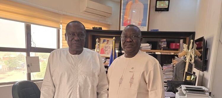 Le 29 janvier 2026, le Directeur Général de l’Institut du Sahel (INSAH), en mission de travail à N’Djaména au Tchad, a été reçu en Audience par Monsieur Khéda Ballah, Ministre de la Production et de l’Industrialisation Agricole de la République du Tchad, Ministre de Coordonnateur du CILSS. Il avait à ses côtés, Monsieur Issakha Banyo, Secrétaire Permanent Coordonnateur du Comité National du CILSS (CONACILSS) du Tchad.